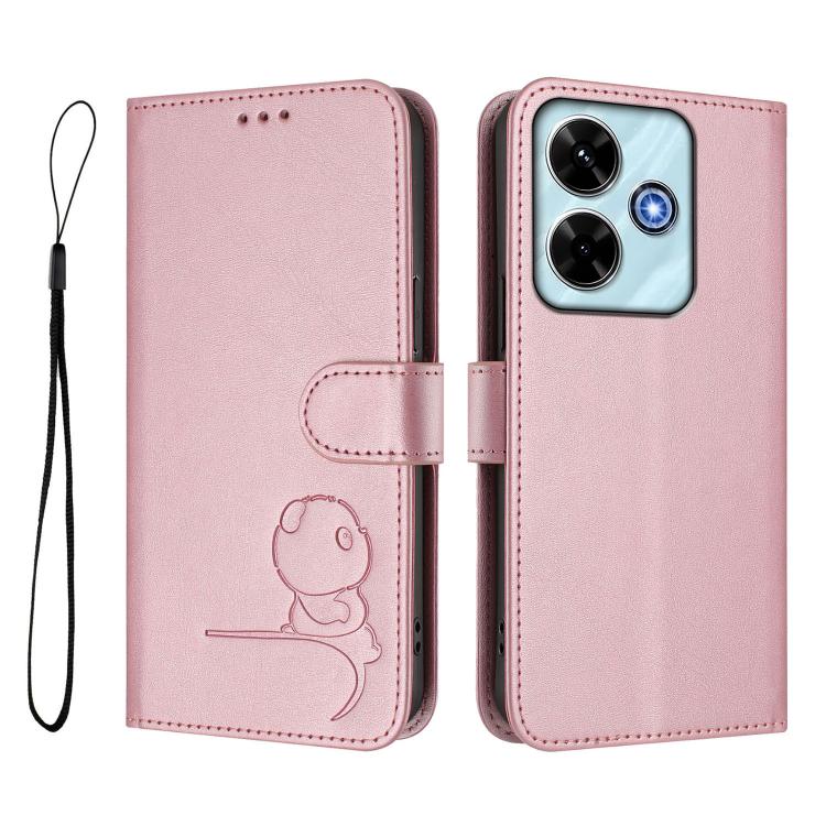 Funda de cuero con relieve RFID y cordón para Redmi 13x / 13 4G / Poco M6 4G (rosa)