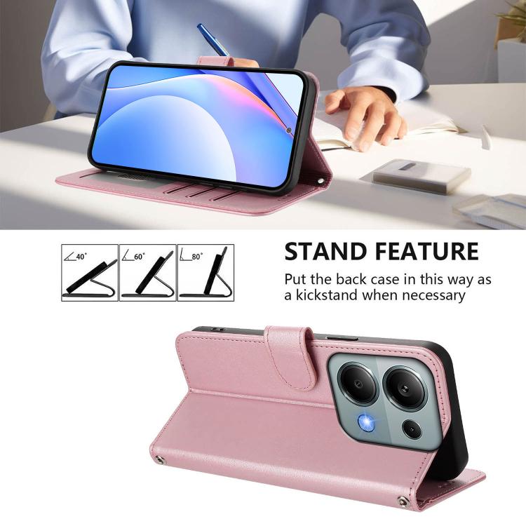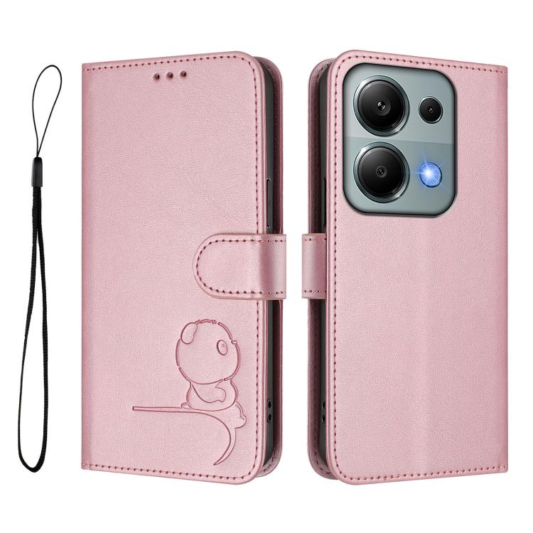 Funda de cuero con relieve RFID y cordón para Redmi Note 13 Pro 4G / Note 14S (rosa)
