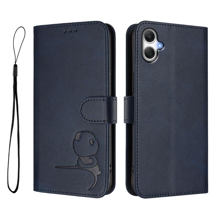 Funda de cuero con relieve RFID y cordón para Samsung Galaxy A07 4G (azul)