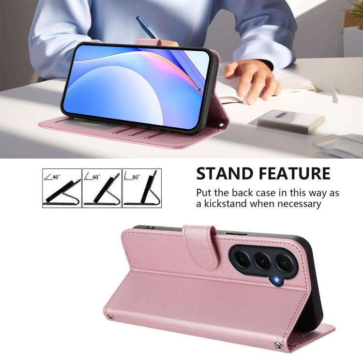Funda de cuero con relieve RFID y cordón para Samsung Galaxy A55 5G (rosa)