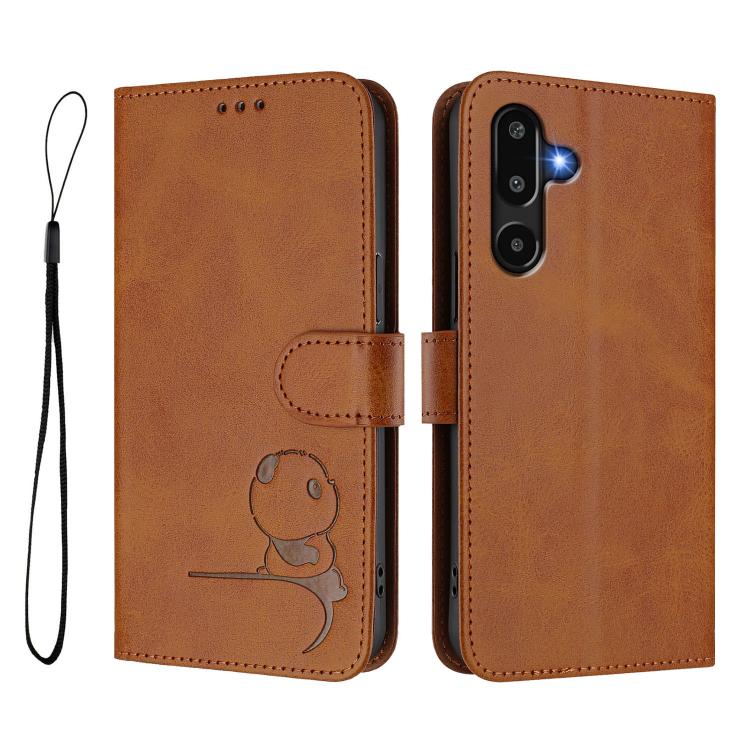 Funda de cuero con relieve RFID y cordón para Samsung Galaxy F16 5G / M16 5G (marrón)