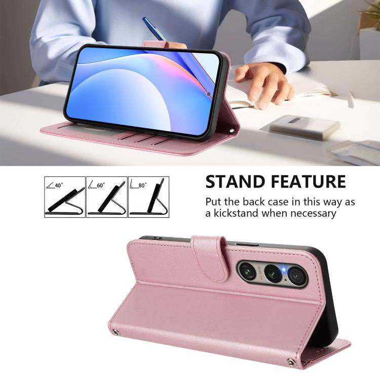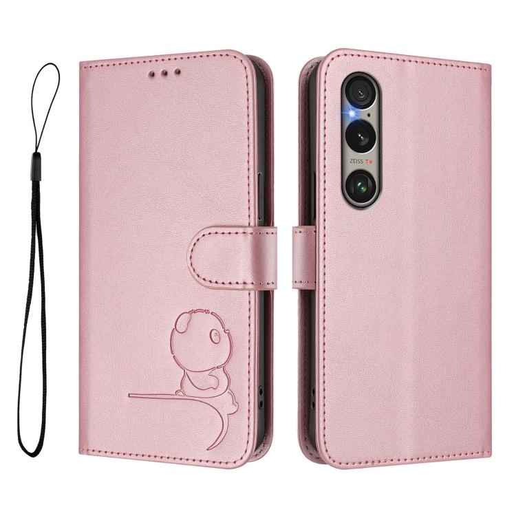 Funda de cuero con relieve RFID y cordón para Sony Xperia 1 VI (rosa)