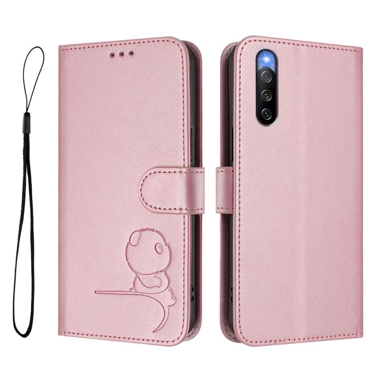 Funda de cuero con relieve RFID y cordón para Sony Xperia 10 IV (rosa)