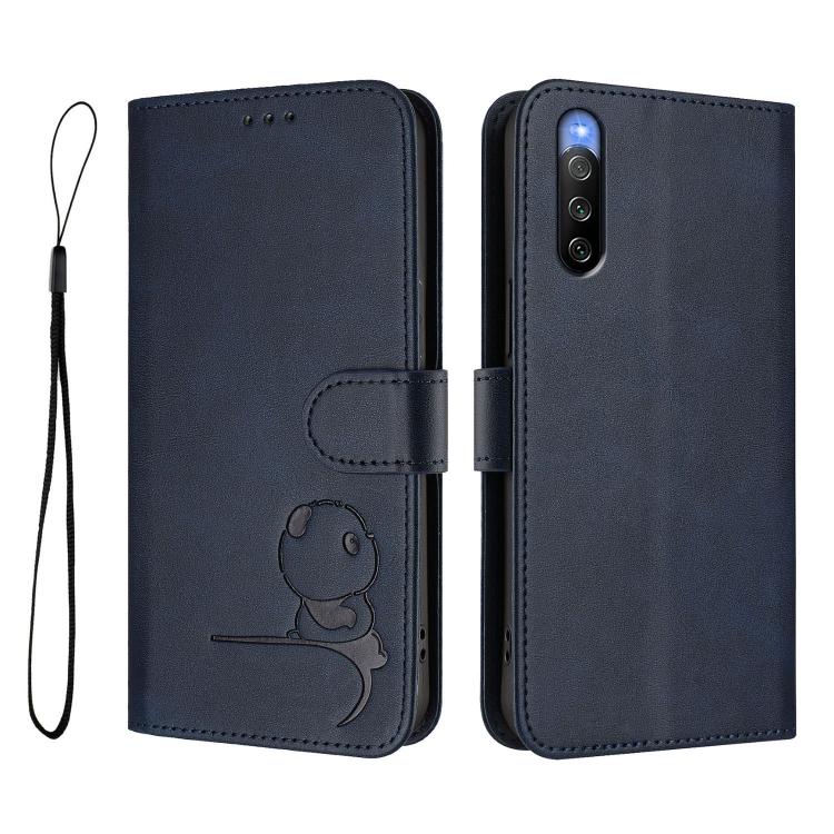 Funda de cuero con relieve RFID y cordón para Sony Xperia 10 V (azul)