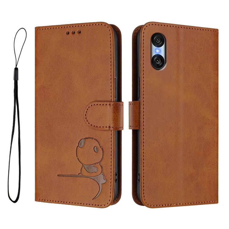 Funda de cuero con relieve RFID y cordón para Sony Xperia 10 VI (marrón)