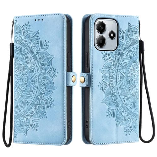 Funda de Cuero con Relieve Totem para Xiaomi Redmi Note 14 5G (Azul)