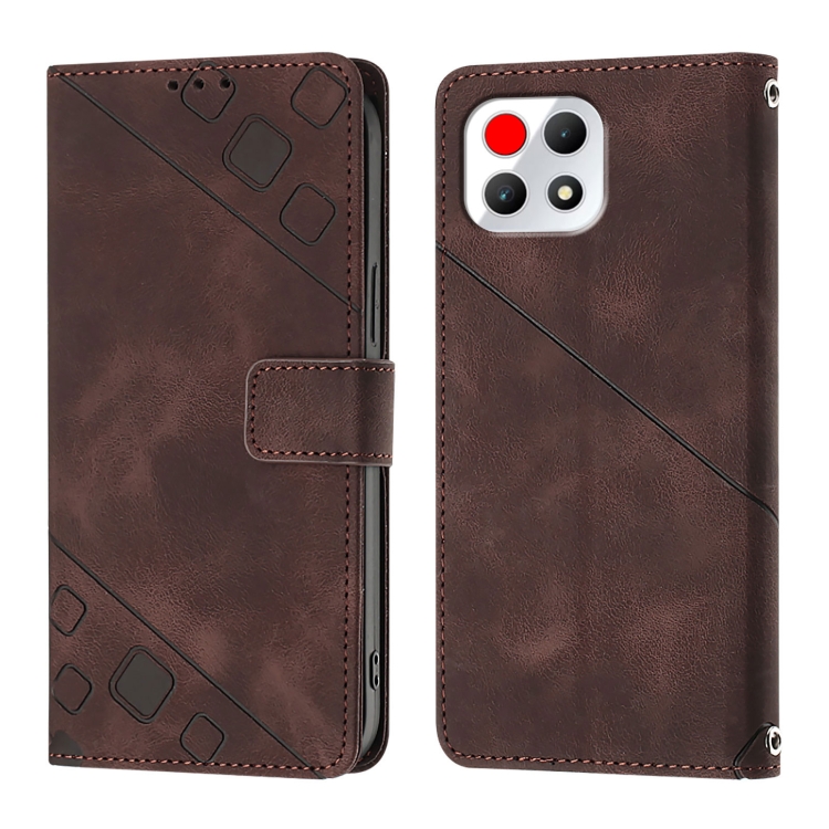 Funda de Cuero con Relieve y Tacto de Piel para T-Mobile Revvl 7 5G (Marrón)