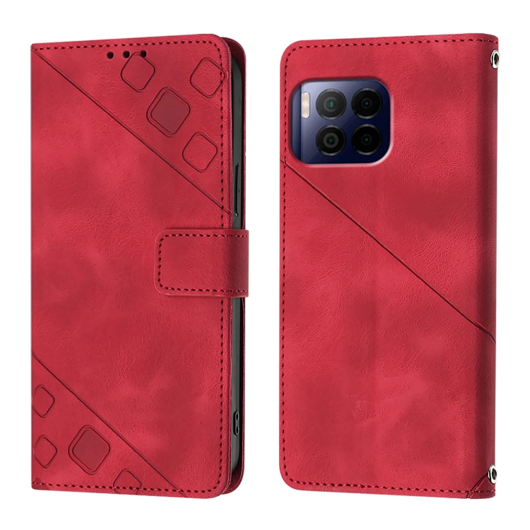 Funda de Cuero con Relieve y Tacto de Piel para T-Mobile Revvl 7 Pro 5G (Roja)