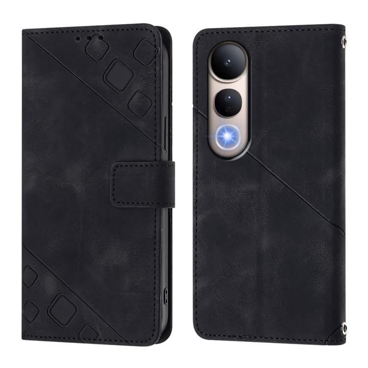 Funda de Cuero con Relieve para Honor 400 Lite con Tacto de Piel (Negra)