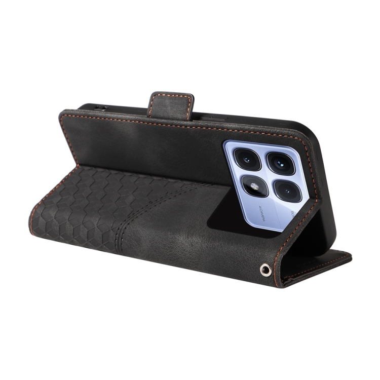 Funda de Cuero con Rombos En Relieve y Estrellas para Redmi K70 Ultra (Negra)