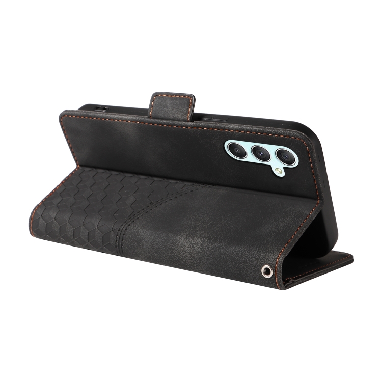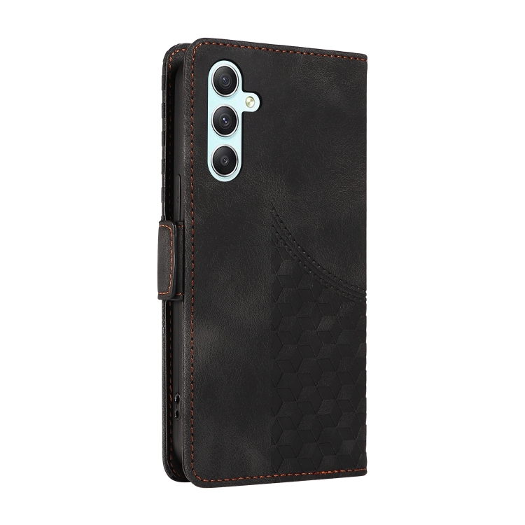 Funda cuero Samsung Galaxy A54 5G rombos relieve estrellas (Negra)
