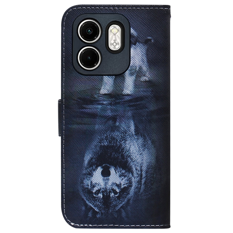 Funda de Cuero con Tapa para Infinix Hot 50I Smart 9 con Dibujo a Color (Lobo y Perro)