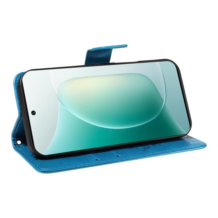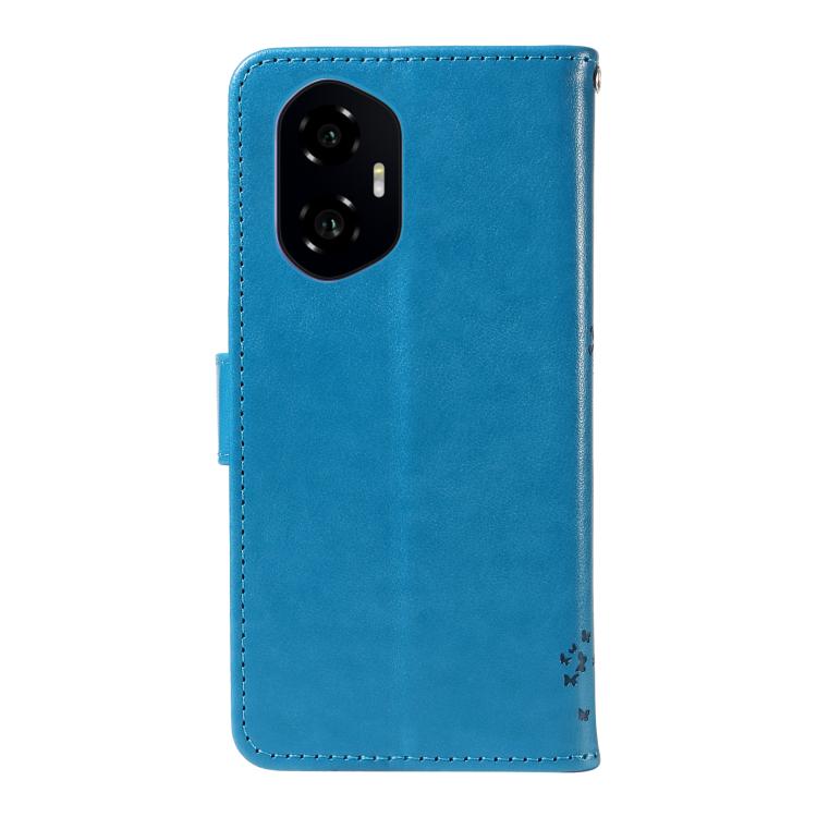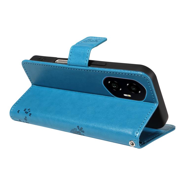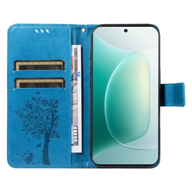 Funda de Cuero con Tapa para Honor 300 con Diseño Árbol y Gato en Relieve (Azul)