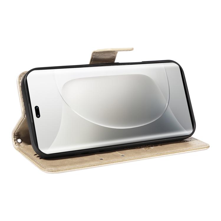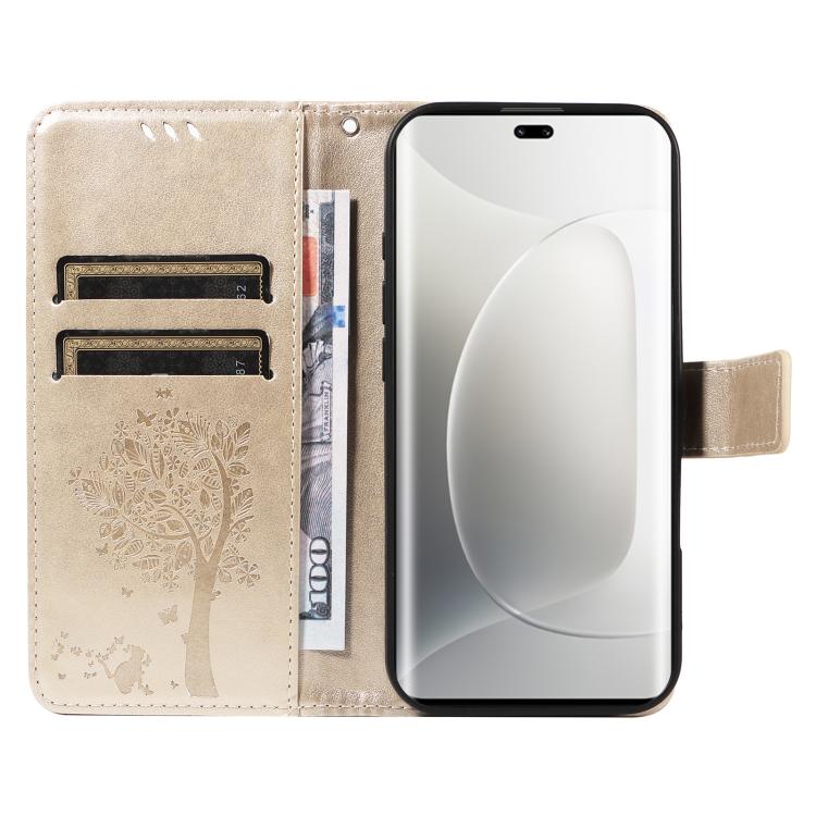 Funda de Cuero con Tapa para Honor 300 Pro/300 U1Tra con Diseño Árbol y Gato (Dorada)