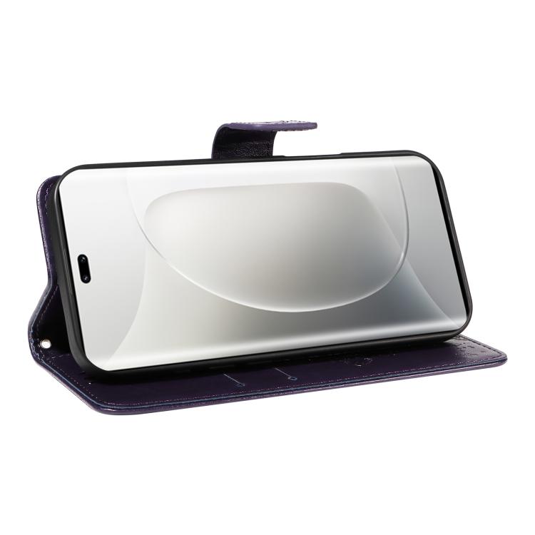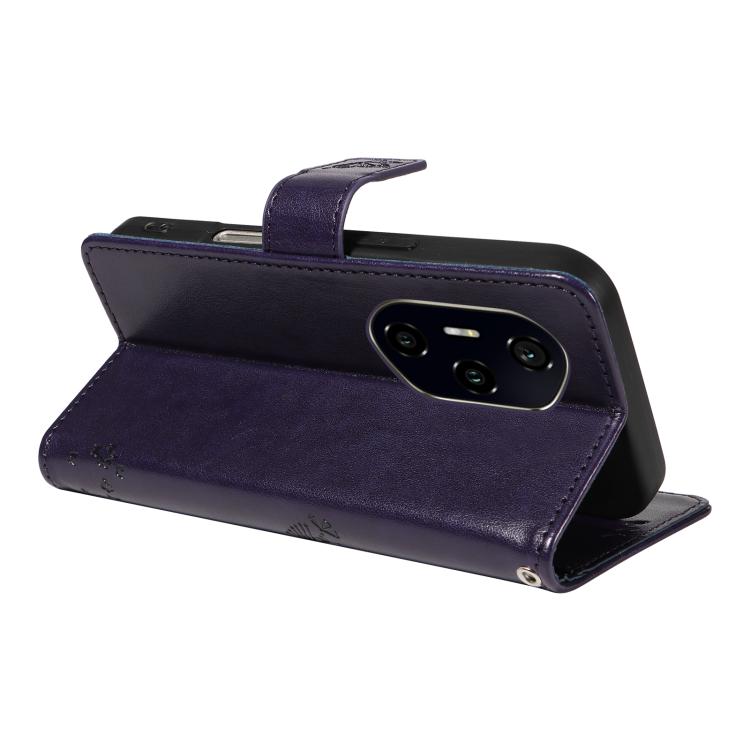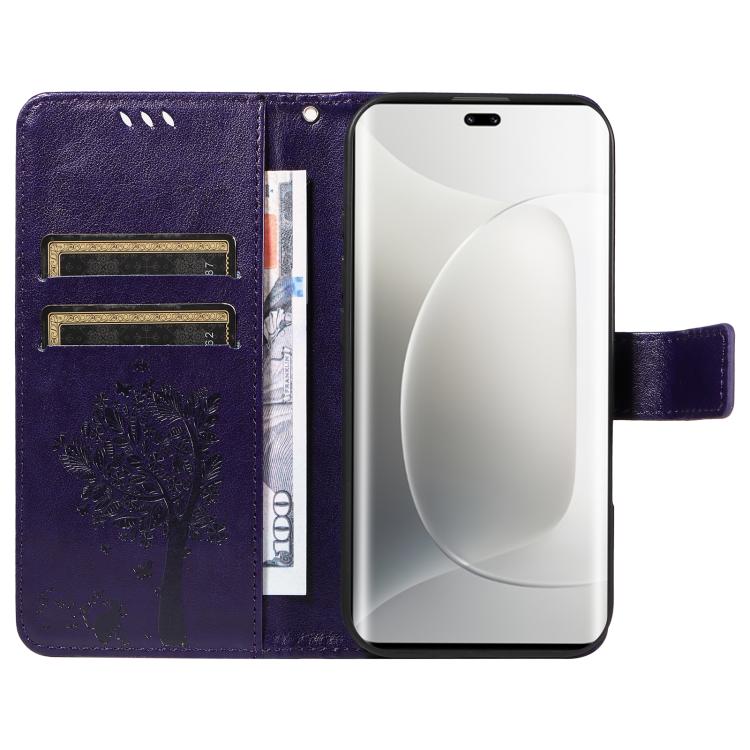 Funda de Cuero con Tapa para Honor 300 Pro/300 U1Tra con Diseño de Árbol y Gato (Morado)