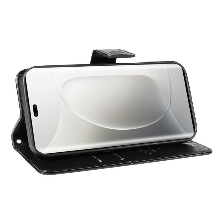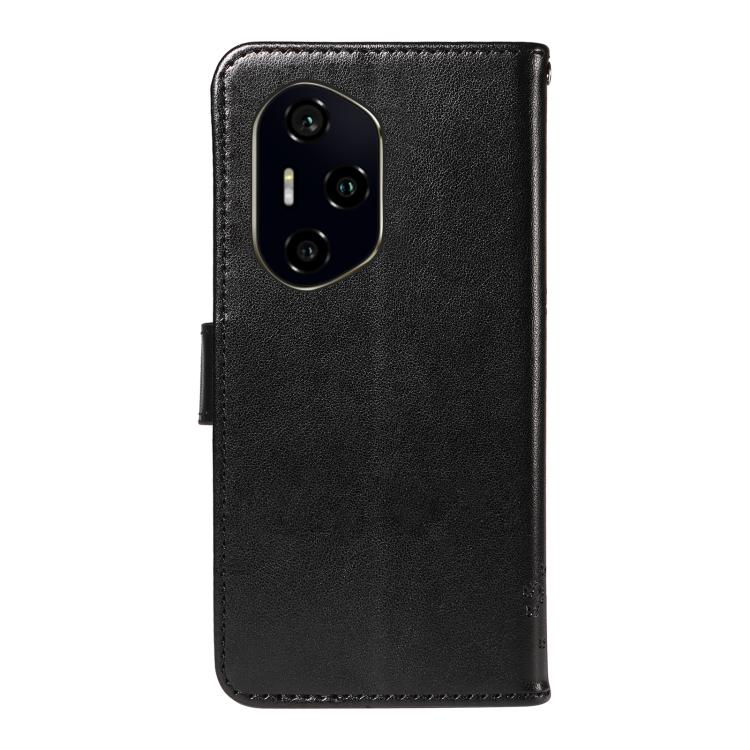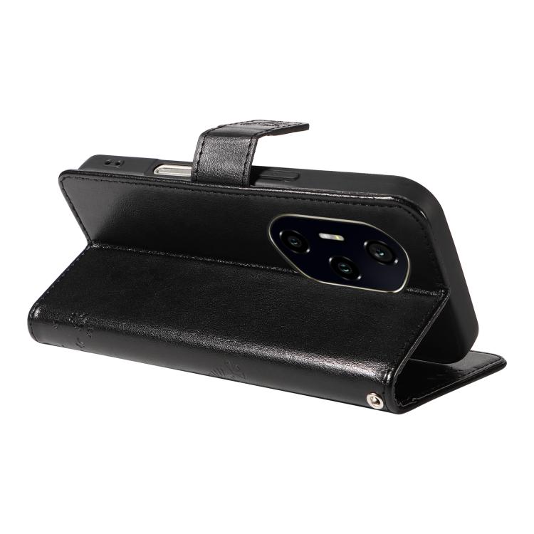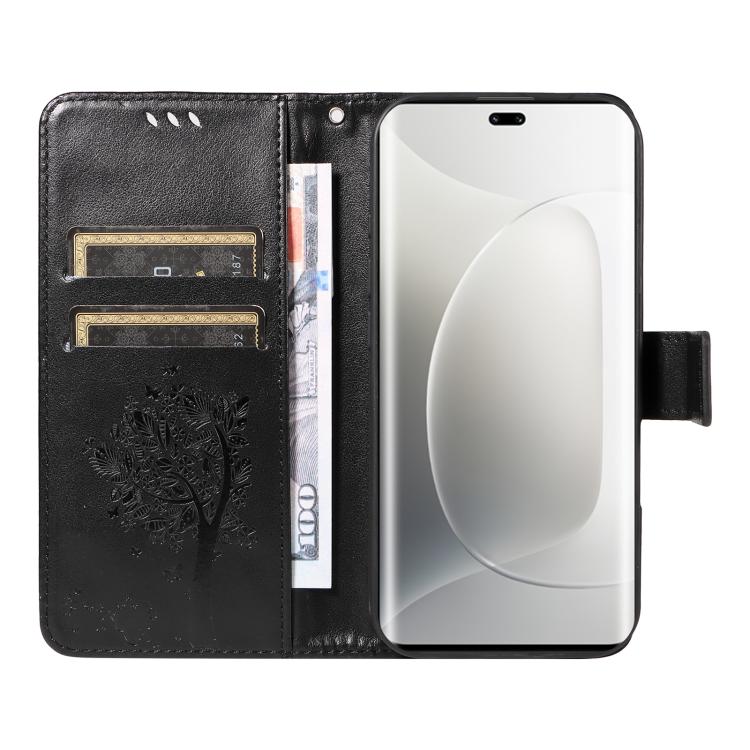 Funda de Cuero con Tapa para Honor 300 Pro/300 Ultra con Diseño Árbol y Gato (Negra)