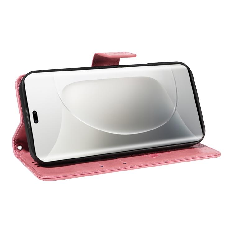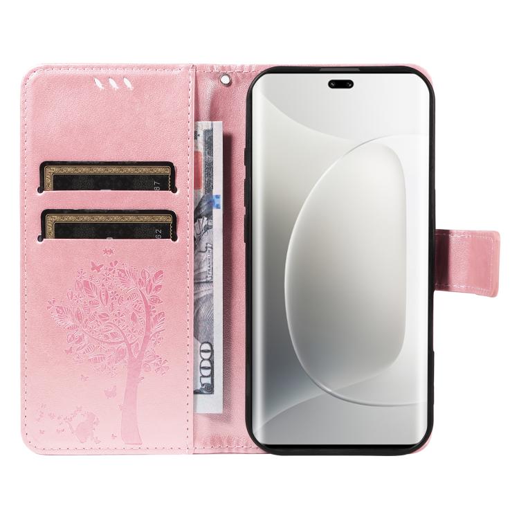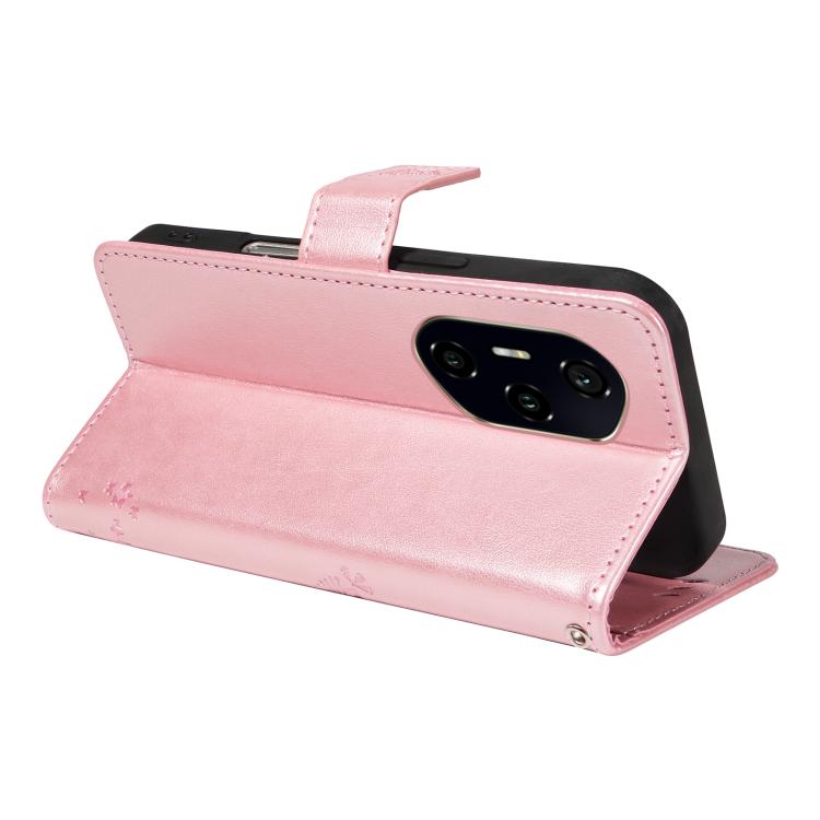 Funda de Cuero con Tapa Honor 300 Pro/300 U1Tra Diseño Árbol y Gato En Relieve (Oro Rosa)