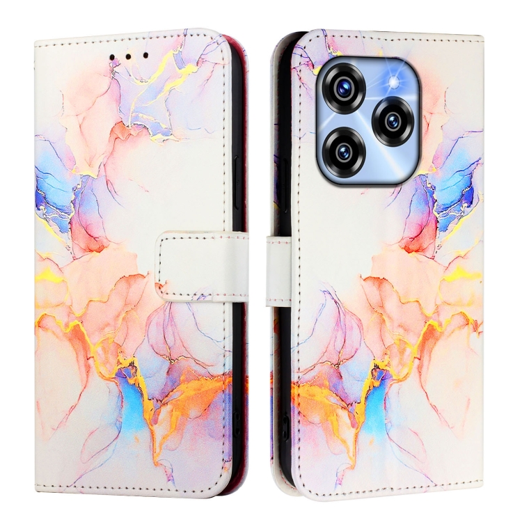 Funda de Cuero con Tapa para Teléfono Oukitel C50 Pt003 Diseño Mármol (Galaxy Marble White)