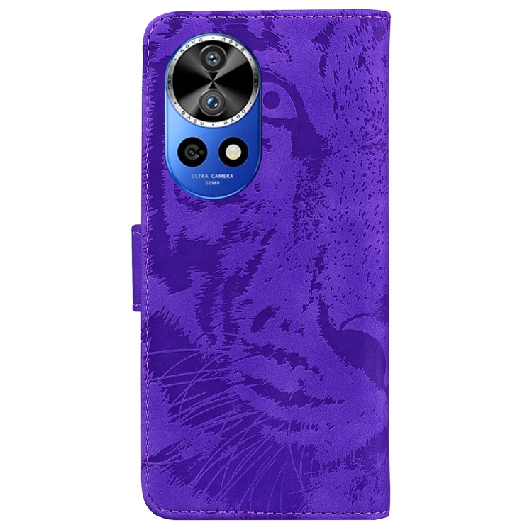Funda de Cuero con Tapa Estampado de Tigre para Huawei Nova 12 Pro y Nova 12 Ultra (Morado)