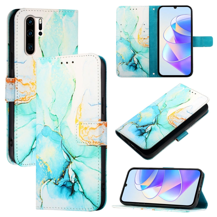 Funda de Cuero con Tapa Patrón Mármol Pt003 para Huawei P30 Pro (Verde)