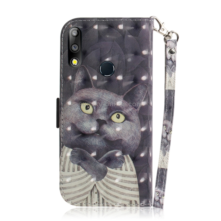 Funda de Cuero con Tapa Horizontal y Dibujo de Gato 3D para Asus Zenfone Max Pro (M2) ZB631KL con Soporte y Ranuras
