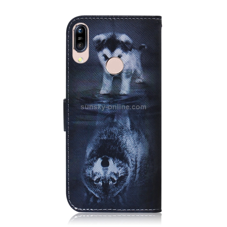 Funda de Cuero con Tapa Horizontal para Asus Zenfone Max (M1) ZB555KL con Soporte y Billetera (Dibujo Lobo y Perro)
