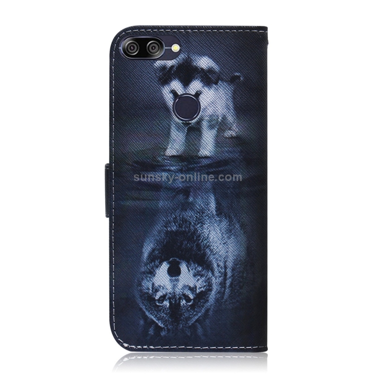 Funda de Cuero con Tapa Horizontal para Asus Zenfone Max Plus (M1) ZB570TL con Soporte y Ranuras (Lobo y Perro)