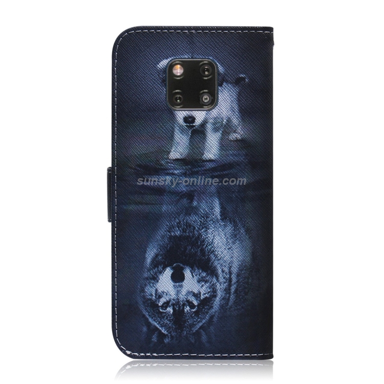 Funda de Cuero con Tapa Horizontal para Huawei Mate 20 Pro con Soporte y Ranuras (Lobo y Perro)