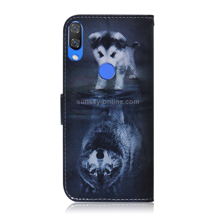 Funda de Cuero con Tapa Horizontal para Huawei Nova 3 con Dibujo de Lobo y Perro, Soporte, Ranuras y Billetera