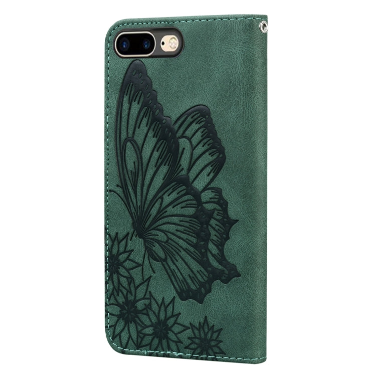 Funda de Cuero con Tapa Horizontal Estampado Mariposas Retro Skin Feel Soporte Ranuras Tarjetas Billetera para iPhone 8 Plus / 7Plus (Verde)