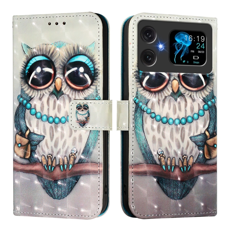 Funda de Cuero con Tapa Horizontal y Pintura 3D para Cubot A20 (Búho Gris)