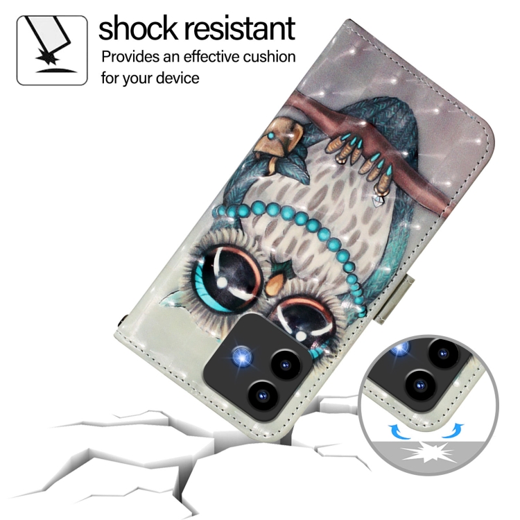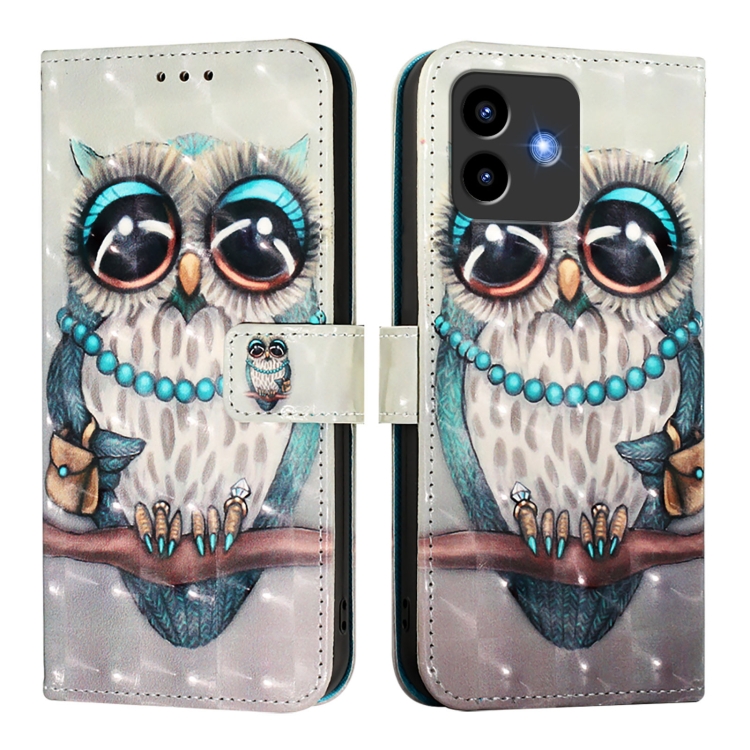 Funda de Cuero con Tapa Horizontal con Pintura 3D para Cubot Note 40 (Búho Gris)