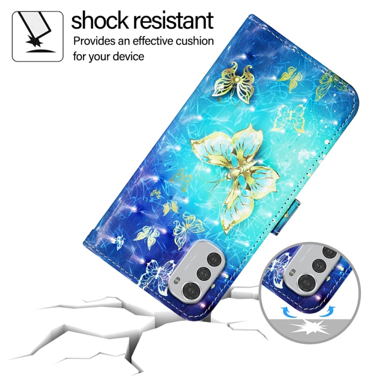 Funda de Cuero con Tapa Horizontal y Pintura 3D para Motorola Moto E32 Global (Mariposa Dorada)