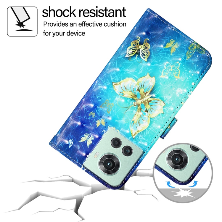 Funda de Cuero con Tapa Horizontal y Pintura 3D para OnePlus 10R / 10R Prime / Ace (Mariposa Dorada)