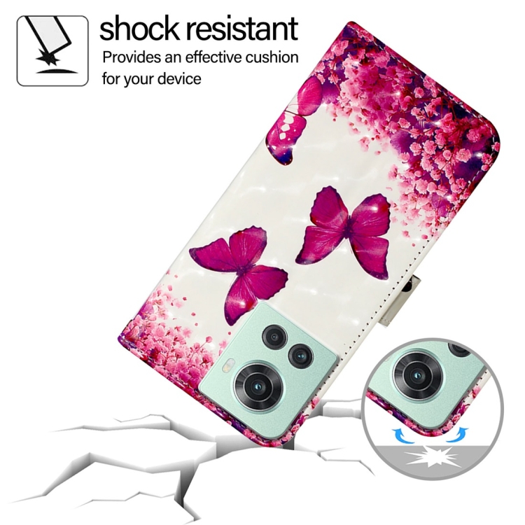 Funda de Cuero con Tapa Horizontal y Pintura 3D para OnePlus 10R / 10R Prime / Ace (Mariposa Rosa)