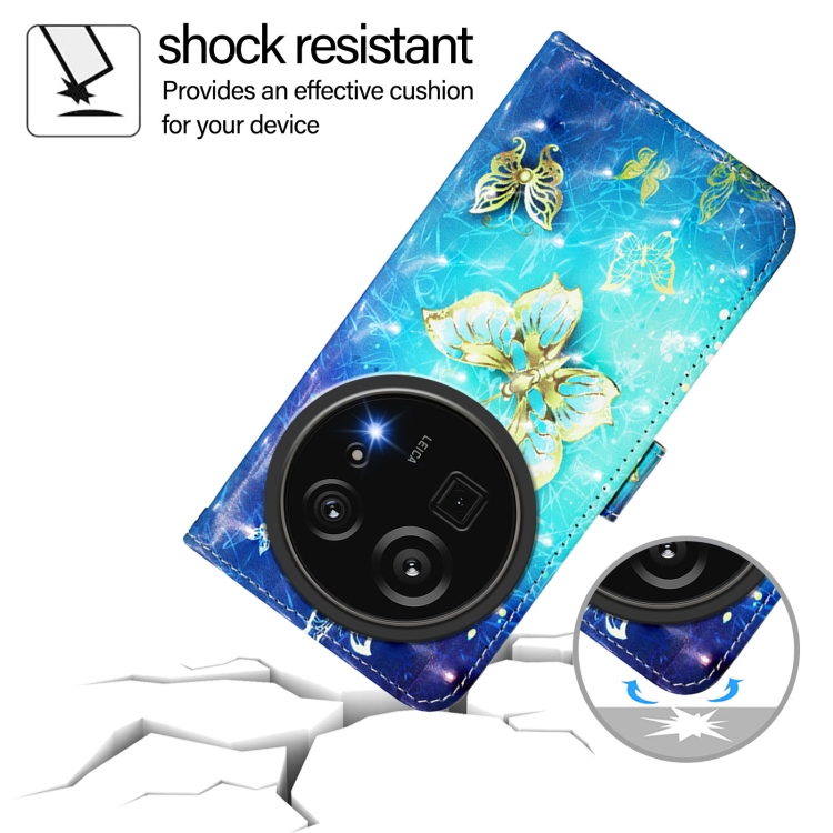 Funda de Cuero con Tapa Horizontal para Sharp Aquos R9 Pro Sh-54E con Pintura 3D (Mariposa Dorada)