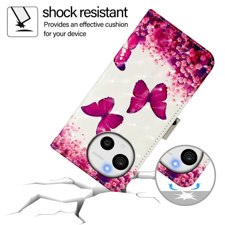 Funda de Cuero con Tapa Horizontal y Pintura 3D para Sharp Aquos Sense9 (Mariposa Rosa)