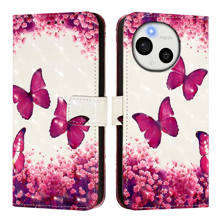 Funda de Cuero con Tapa Horizontal y Pintura 3D para Sharp Aquos Sense9 Plus (Mariposa Rosa)