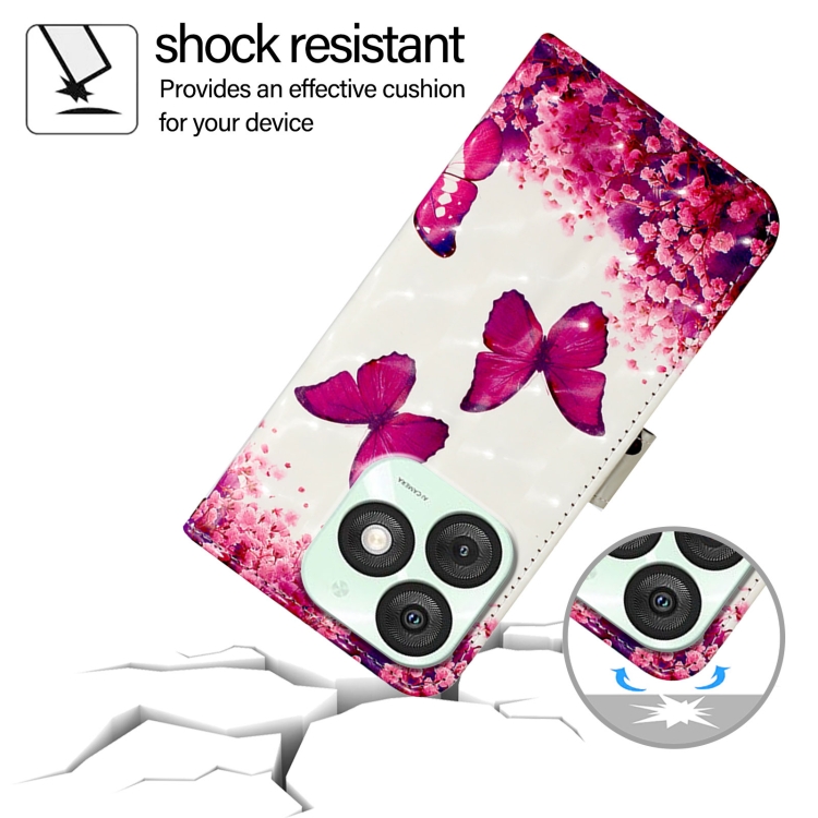 Funda de Cuero con Tapa Horizontal y Pintura 3D para Itel A50 (Mariposa Rosa)