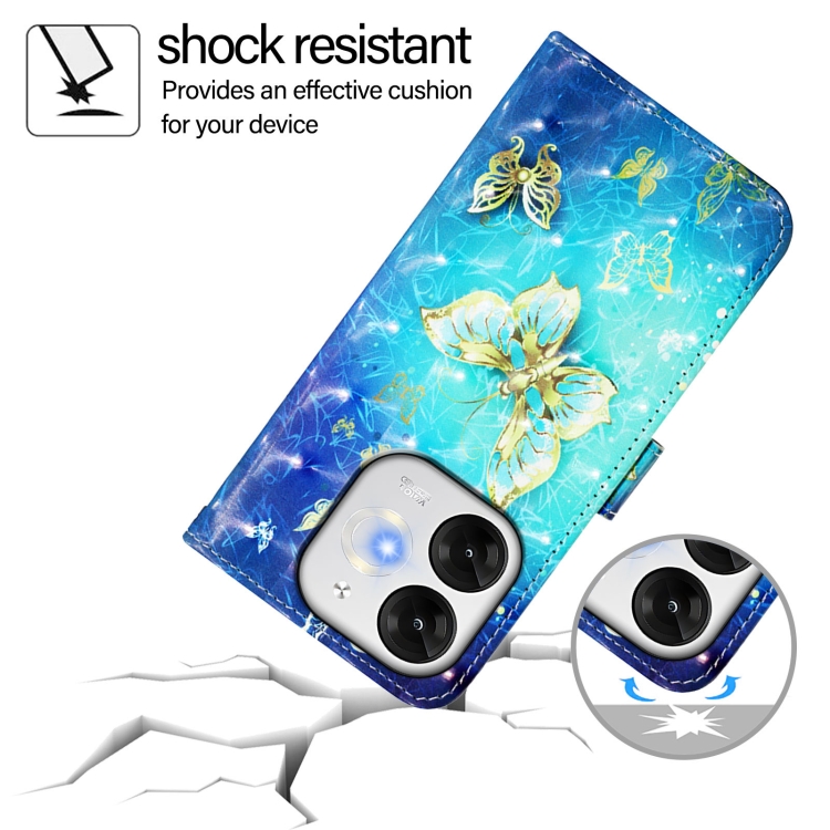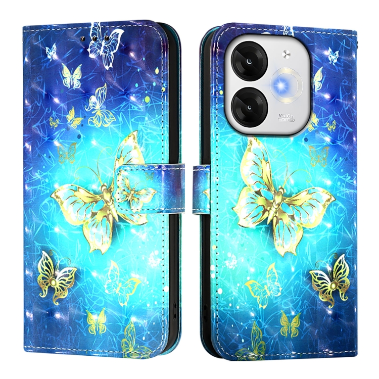 Funda de Cuero con Tapa Horizontal y Pintura 3D para Itel A80 4G (Mariposa Dorada)