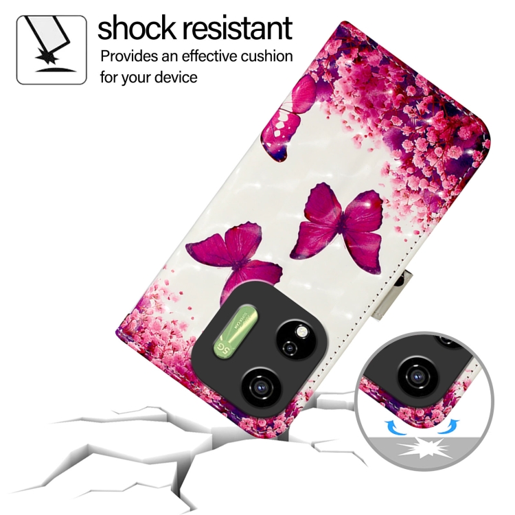 Funda de Cuero con Tapa Horizontal y Pintura 3D para Itel P55 5G (Mariposa Rosa)