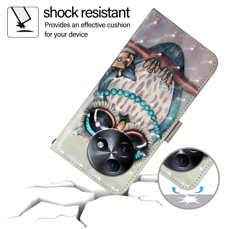 Funda de Cuero con Tapa Horizontal y Pintura 3D para Itel S24 (Búho Gris)