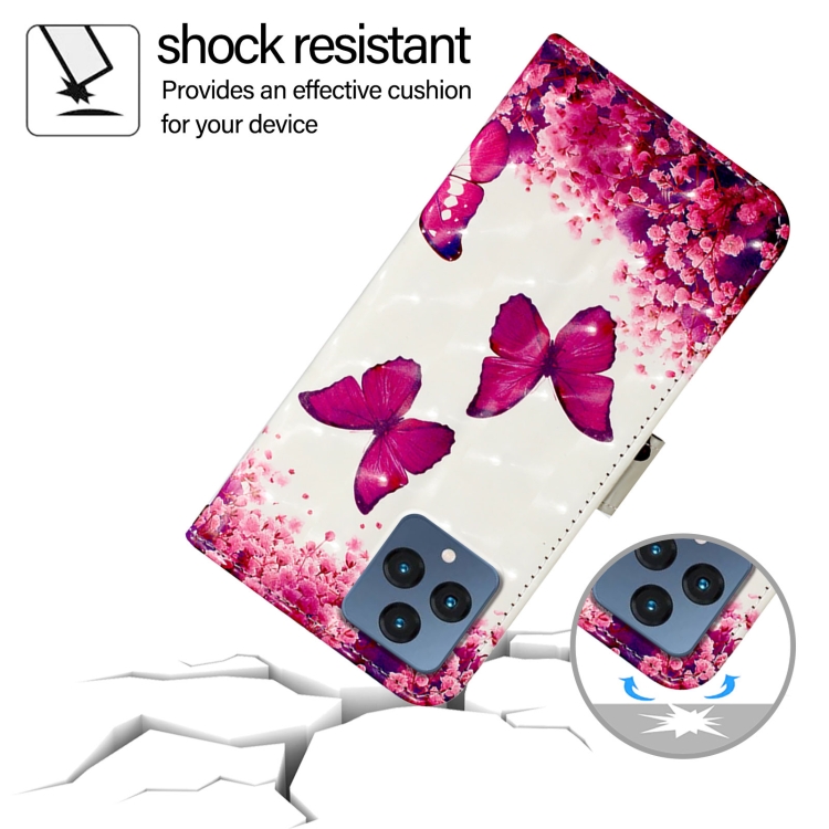 Funda de Cuero con Tapa Horizontal para T-Mobile Revvl 6/6X con Pintura 3D (Mariposa Rosa)