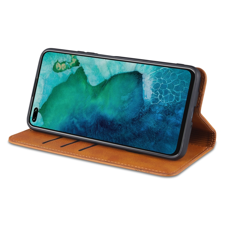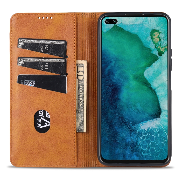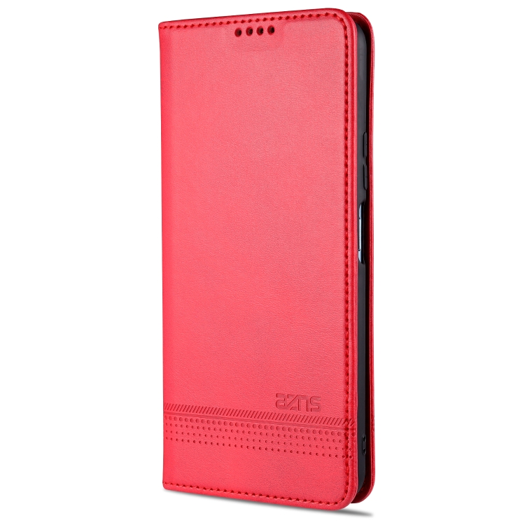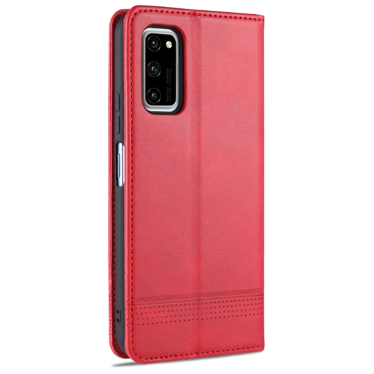 Funda de cuero con tapa horizontal con textura de becerro magnética AZNS para Huawei Honor V30 AZNS con ranuras para tarjetas, soporte y billetera (rojo)