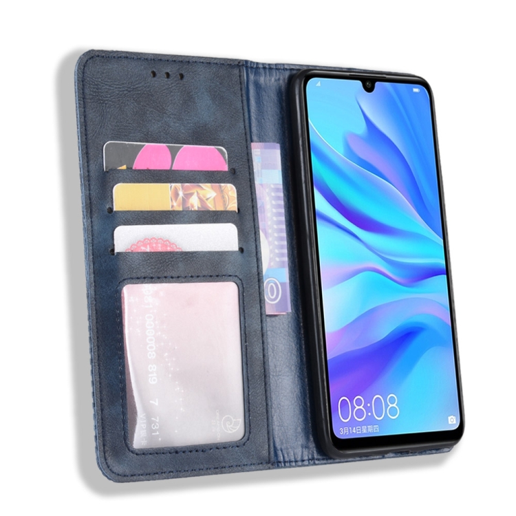Funda de Cuero con Tapa Horizontal para Huawei Maimang 8 con Soporte y Ranuras (Azul)