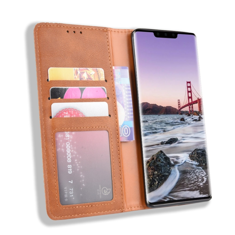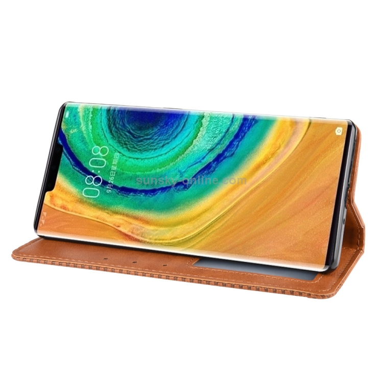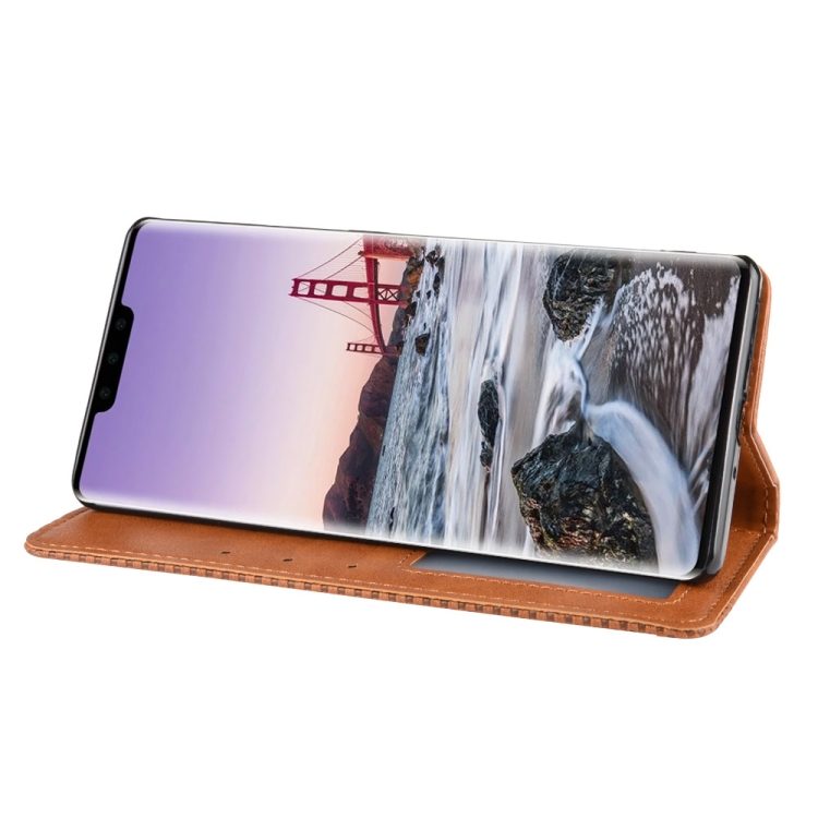 Funda de Cuero con Tapa Horizontal para Huawei Mate 30 Pro con Hebilla Magnética, Soporte, Ranuras y Marco de Fotos (Marrón)