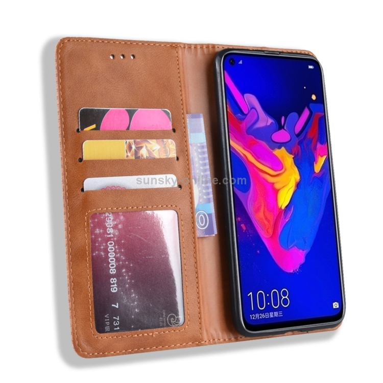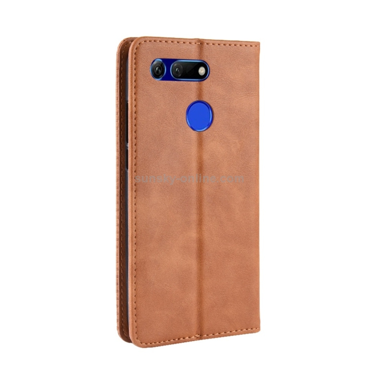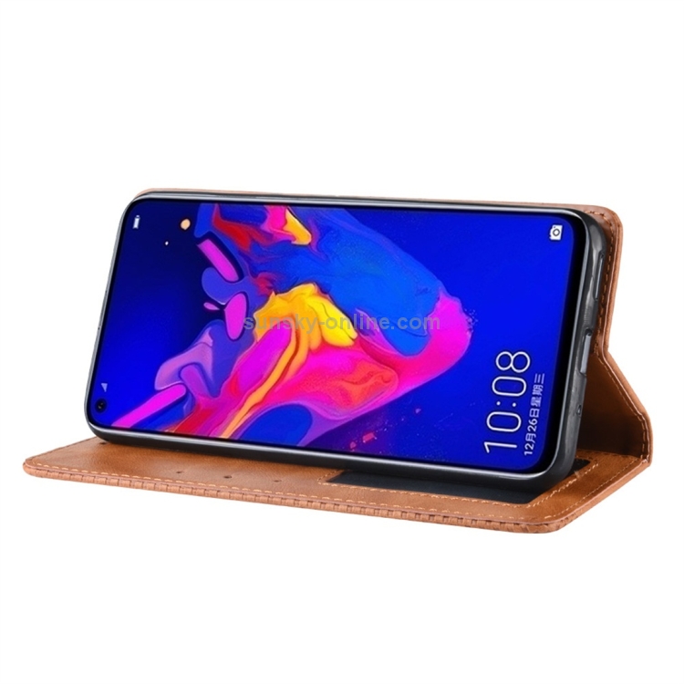 Funda de Cuero con Tapa Horizontal para Huawei Honor View 20 con Soporte y Ranuras (Marrón)
