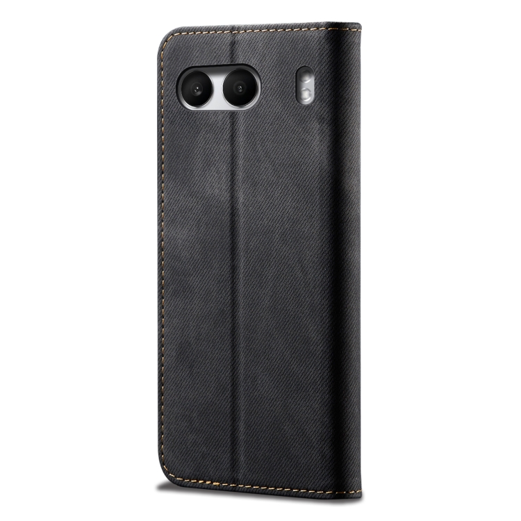 Funda de Cuero con Tapa Horizontal para OnePlus Nord 4 (Negro) con Textura Vaquera y Estilo Casual