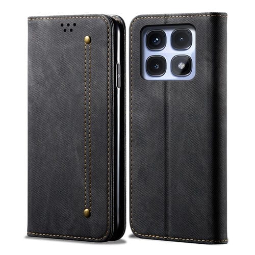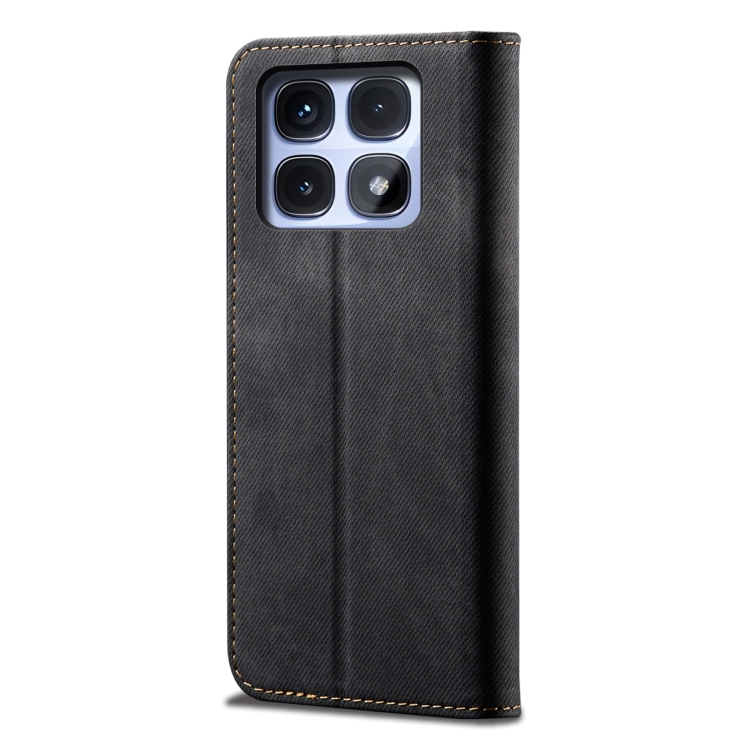 Funda de Cuero con Tapa Horizontal con Textura Vaquera y Estilo Casual para Redmi K70 Ultra 5G (Negro)