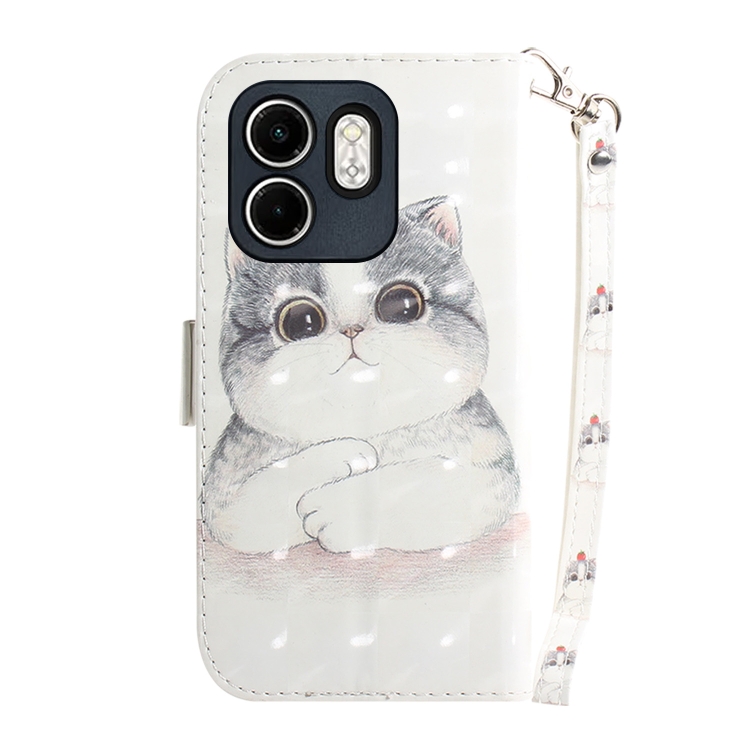 Funda de Cuero con Tapa Horizontal 3D para Infinix Hot 50I y Smart 9 (Lindo Gato)